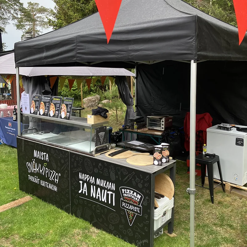 Olemme ranteet jauhoissa aina siellä missä tarvitaan. Pienistä häistä aina Suomen suurimpiin festareihin, fiilis katossa ja pizzasuut hymyssä!