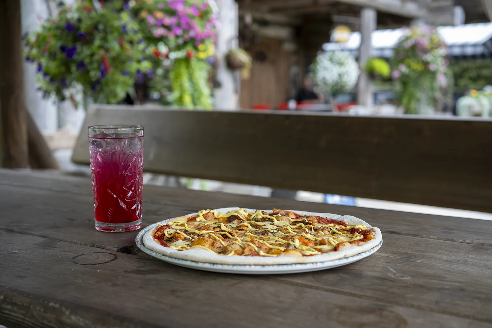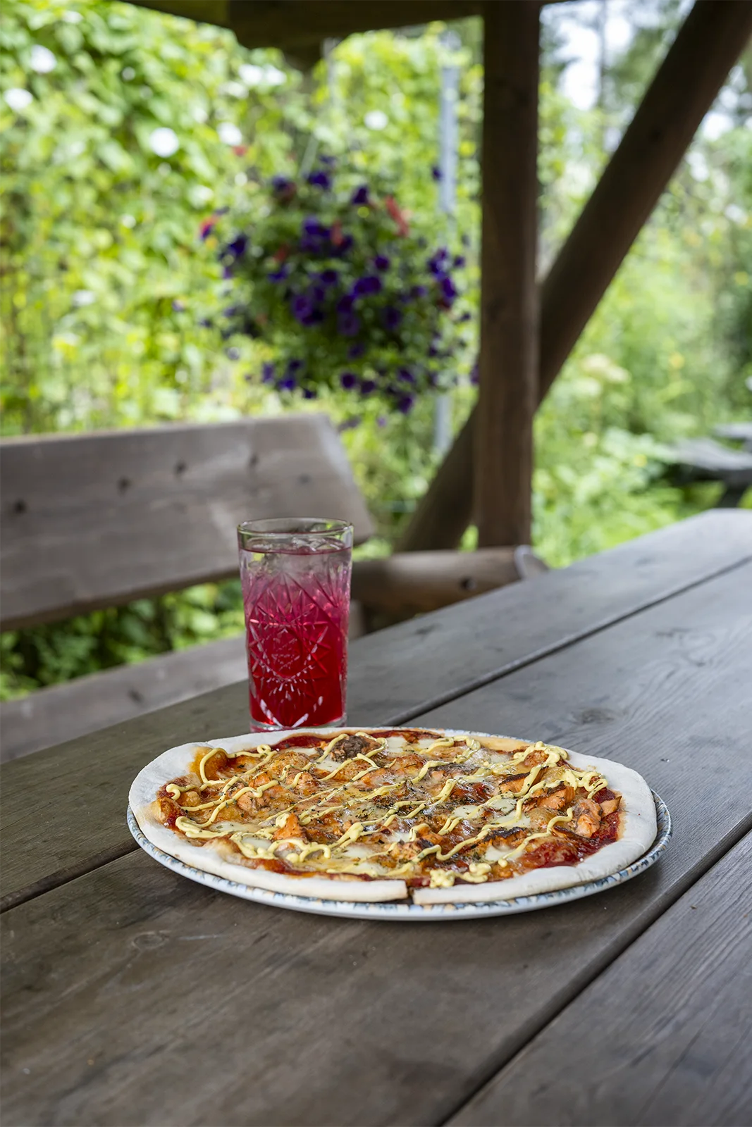 ”Meillä on täällä salaatit ja vohvelit ja lohikeitto, niin halusimme ottaa mukaan jotain toisenlaista syötävää, jotta olisi laajempi ruokavalikoima” Mirva selittää. Kahvilassa käy myös lounasruokailijoita ja viihtyisillä terasseilla istuskellaan pitkään. Mirvan mukaan asiakkaat kysyvät toisinaan burgereita ja ranskalaisia, mitä heillä ei kahvilassa tarjota vohveliburgeria lukuunottamatta, joten pizza täydentää valikoimaa.