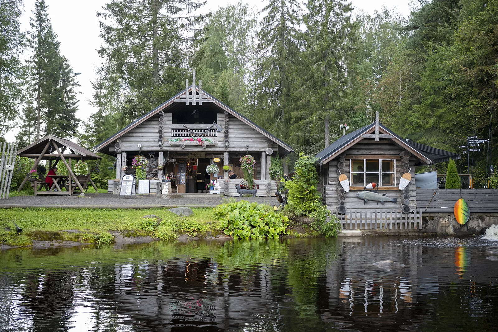 Runsaat kukkaistutukset, kauniit miljööseen sopivat hirsirakennukset, kosken kuohunta ja kalan savustamon tuoksut tervehtivät Koskicafe Myllyn asiakkaita. Kahvilan pihapiirissä, kosken varrella voi istua kutsuvilla terasseilla tai suojaisissa sopeissa.