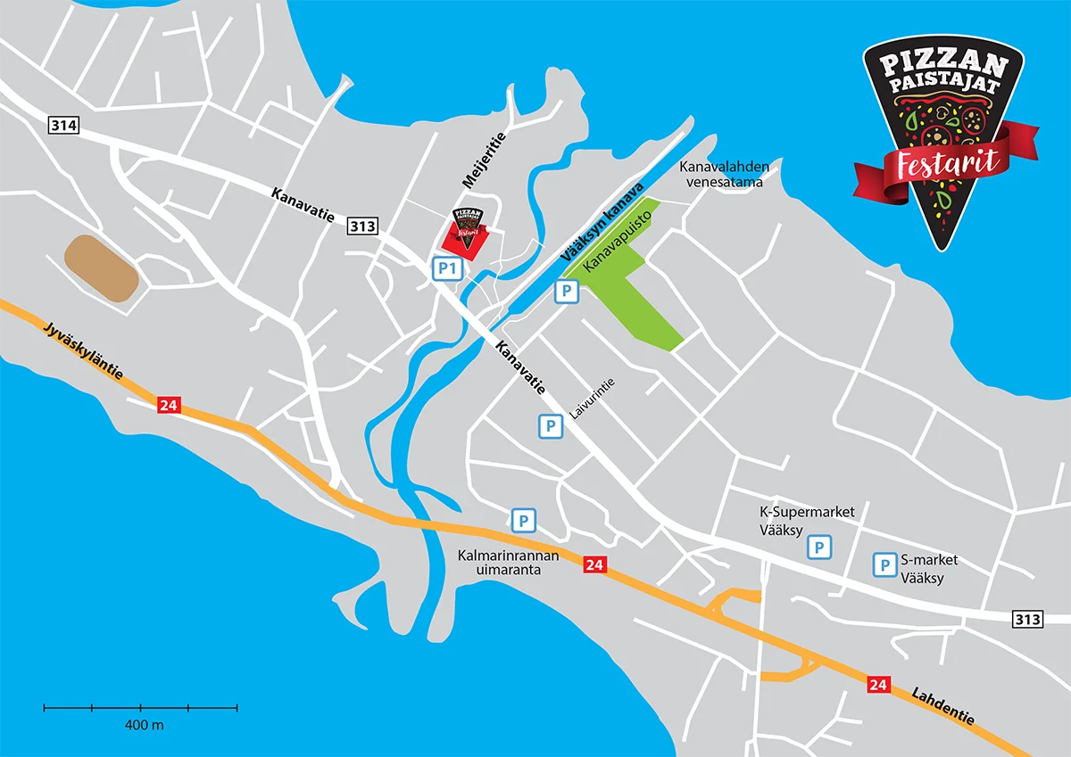 Pizzanpaistajat pizzafestarit järjestetään Vääksyn kanavan varrella kauniilla puistoalueella. Festarialueelta löydät POP-UP paistopisteiden lisäksi useita slaissilipukemyyntipisteitä ja anniskelupisteitä, Pizzanpaistajien merch-pisteen sekä Pizzatarvike.fi -myyntipisteen.